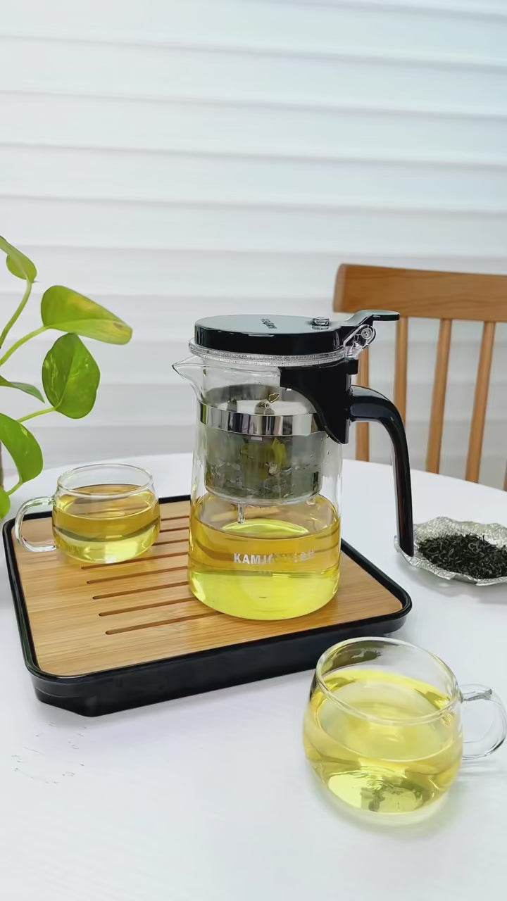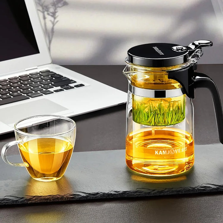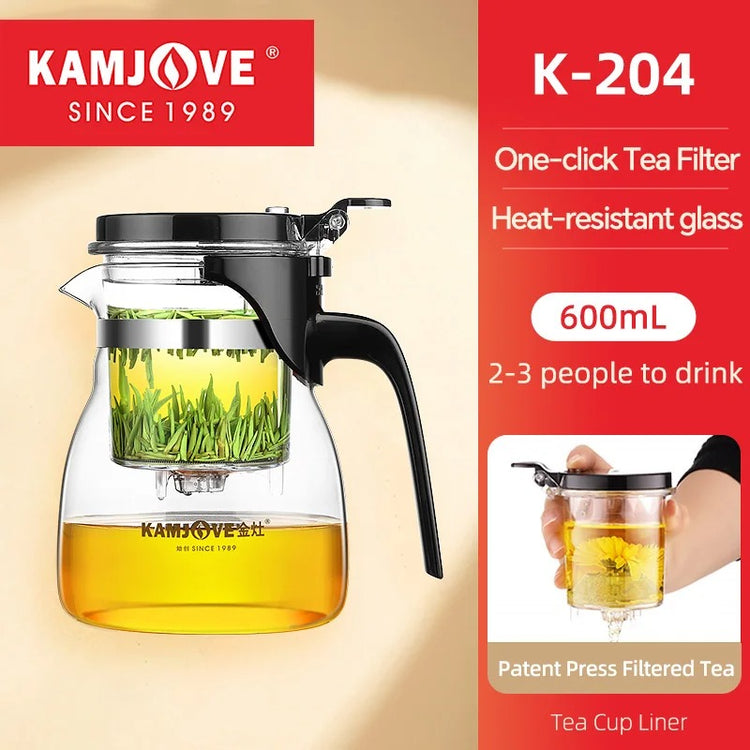 KAMJOVE Heat-Resistant Glass Teapot with Infuser – One-Button Filtering Tea Separation Kettle